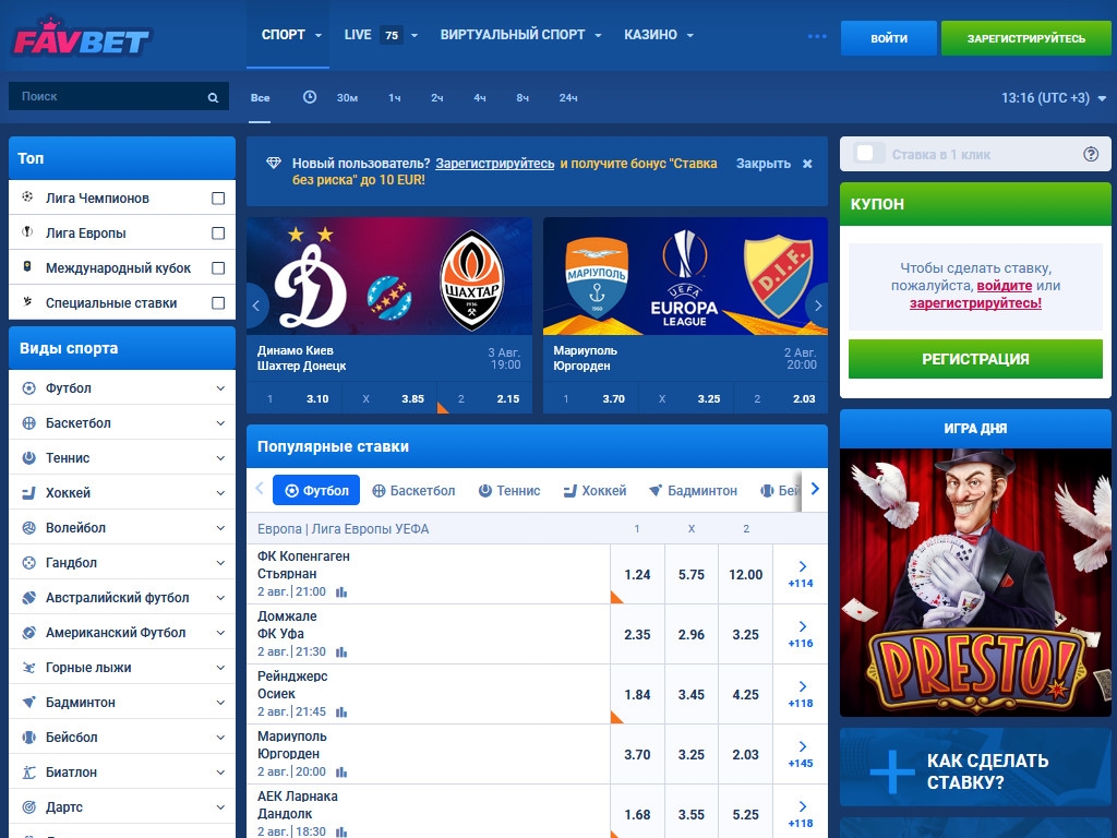 О деятельности компании на офлайновом рынке говорить не будем. В настоящее время она действует на сайте favbet.com. Об услугах и прочих особенностях портала идет речь в обзоре.