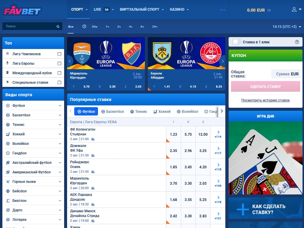 Букмекер FavBet работает на рынке спортивных прогнозов с 1999 года, поэтому его можно отнести к числу старожилов отрасли. Контора востребована у европейских пользователей. В настоящее время ее клиентами являются более четверти миллиона игроков из разных стран.