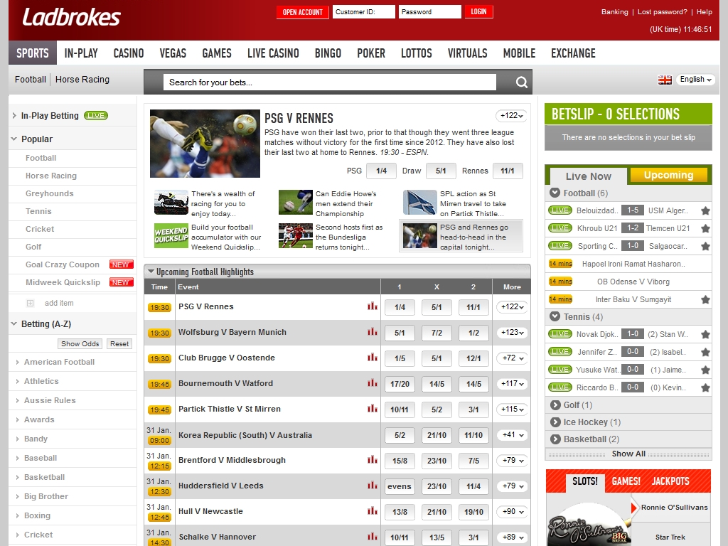 Известный игорный портал Ladbrokes в представлении не нуждается, ведь этот авторитетный ресурс уже давно радует качественным сервисом любителей онлайн-казино, спортивного покера, бинго, мгновенных лотерей и прочих азартных развлечений. Сегодня мы поговорим разделе Ladbrokes, посвященном букмекерским ставкам.