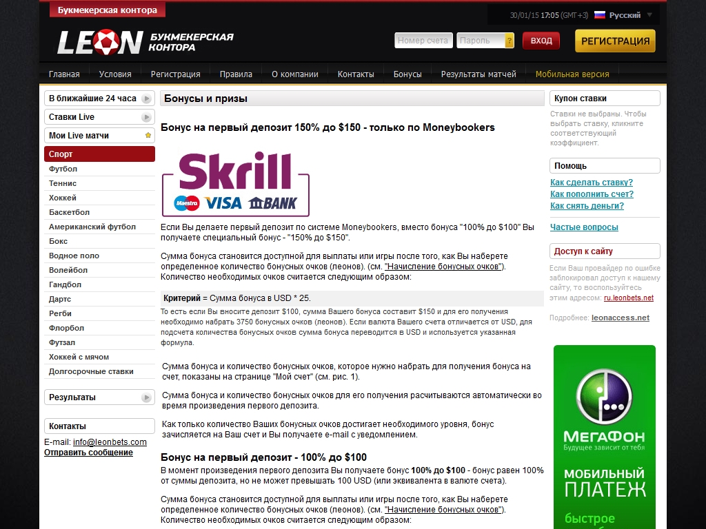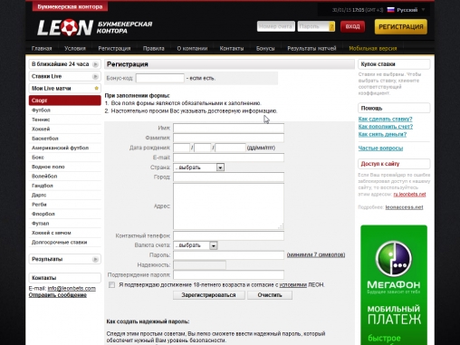 В разделе «О компании» на сайте Leonbets говорится о том, что букмекерская контора Leonbets ориентирована не только на игроков из Западной Европы, но также на русскоязычных пользователей. И это не пустые слова. Депозиты в Leonbets принимаются удобными для большинства наших читателей способами. Сайт полностью русифицирован, а в службе поддержки работают русскоязычные сотрудники.