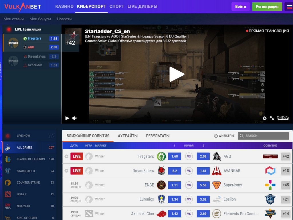 «ВулканБет» позволяет предсказывать результаты поединков в нескольких десятках видов спорта. Все они перечислены в левой колонке на сайте.