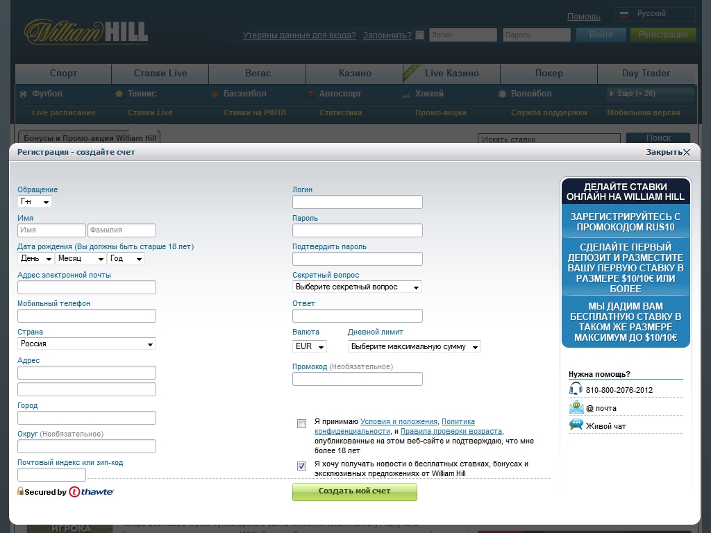 Сайт William Hill переведен на несколько языков, включая русский. Основной версией является англоязычная, поэтому при любых расхождениях нужно ориентироваться на нее.