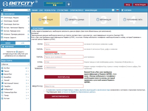 Пользоваться услугами букмекера можно после регистрации и верификации личности. Сначала вы должны открыть счет на сайте, затем посетить офлайновый пункт прием ставок «Бетсити», предъявить администратору документ и номер счета, который был вам присвоен при регистрации. Граждане других стран также могут идентифицироваться по своему паспорту.