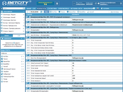 В БК «Бетсити» можно делать ставки таких видов:
