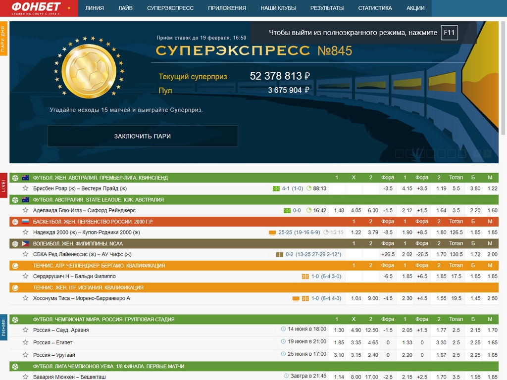 Также часто проводятся розыгрыши денежных и ценных призов. Они могут быть всеобщими или региональными. Следите за акциями в разделе Promo на портале fonbet.ru.