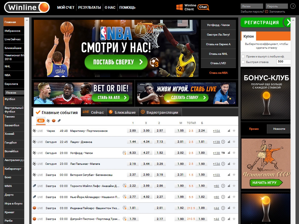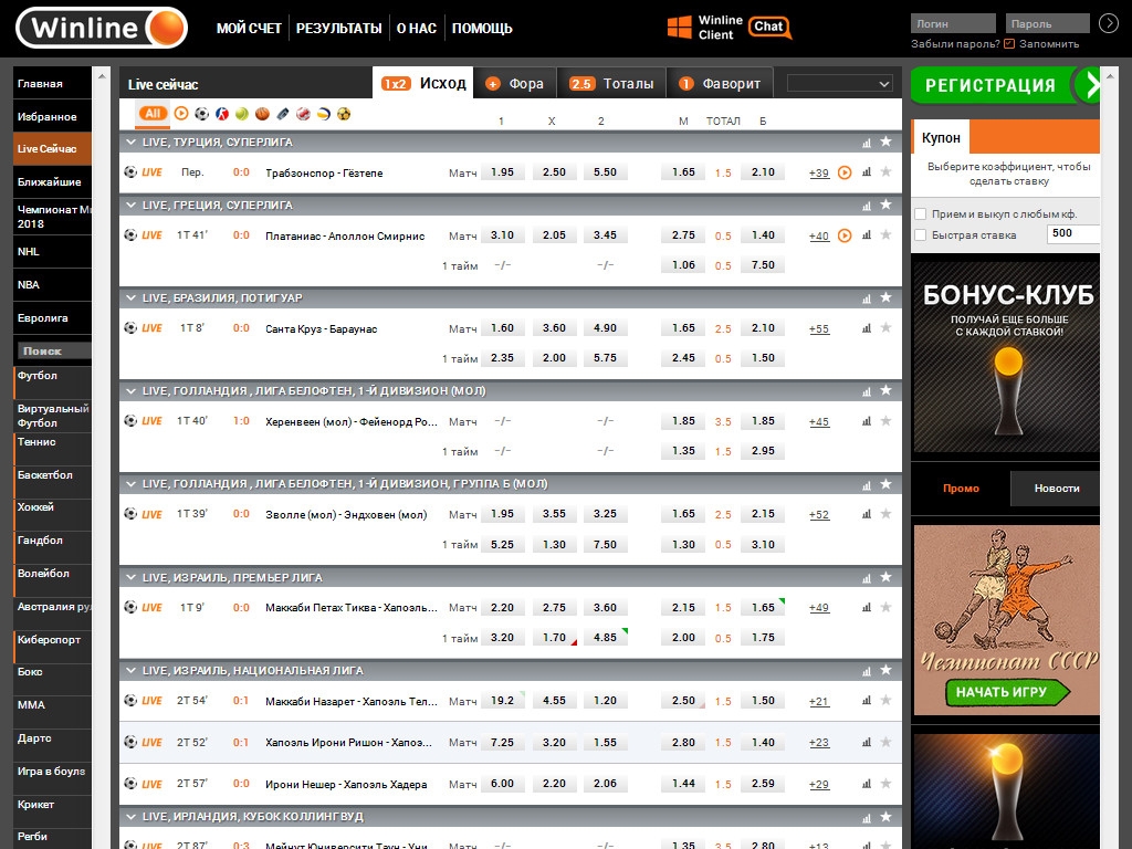 Ставки можно делать в прематче (до начала события) или в режиме лайв (по ходу поединка). В прематче линия гораздо шире, но в Live-режиме также охватывается большинство важнейших матчей.