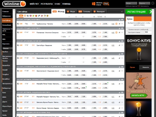 - Широкая линия и разные типы ставок;