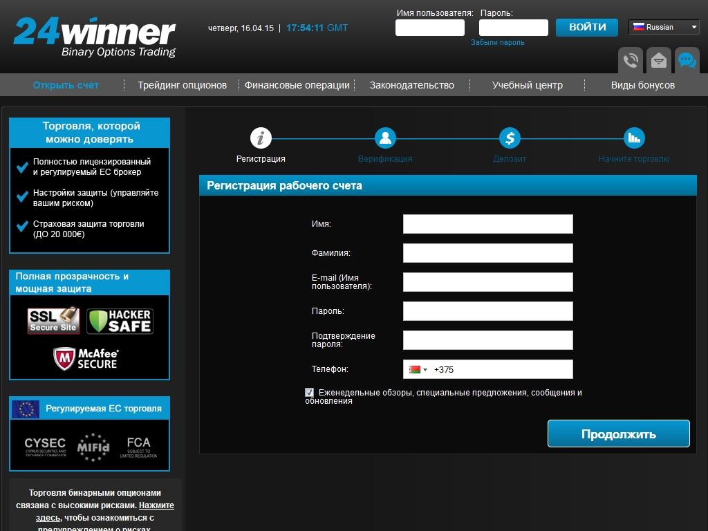 - торговая платформа 24winner для бинарных опционов