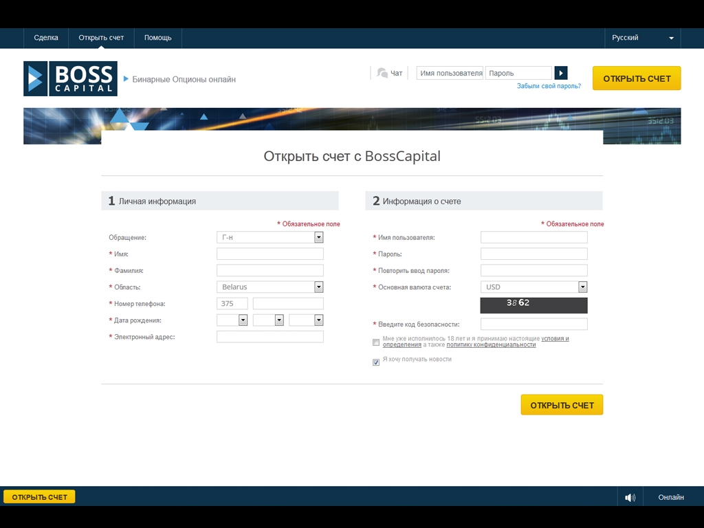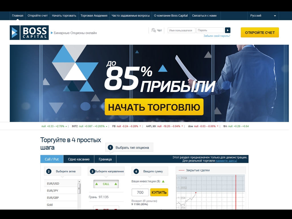- торговая платформа Bosscapital для бинарных опционов