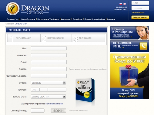 Сайт данного брокера Dragon Options весь в синих оттенках, приятный на глаз. Нравится, что много условий торгов для трейдеров и очень много обучающего материала, что круто для новеньких.