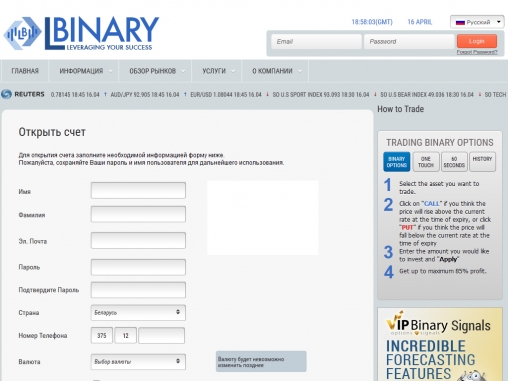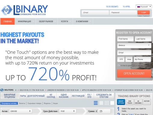 - торговая платформа LBinary для бинарных опционов