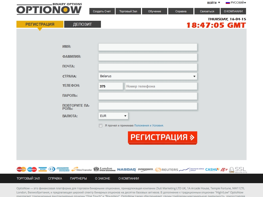 OptioNow предлагает трейдерам и читателям casinoz.me следующие условия торговли на мировых финансовых рынках: