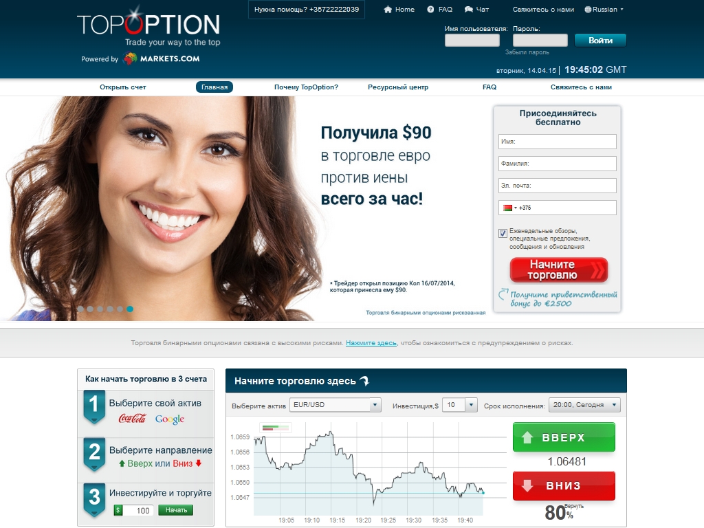 TopOption отличают самые высокие выплаты, большой выбор активов, контроль со стороны ЕС, уникальные функции для торговли бинарными опционами, самые передовые виды экспирации и очень хорошая служба поддержки.