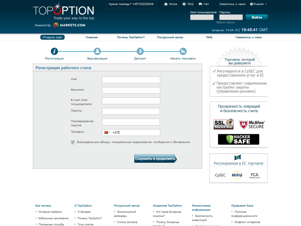 Откройте торговый счет в TopOption!