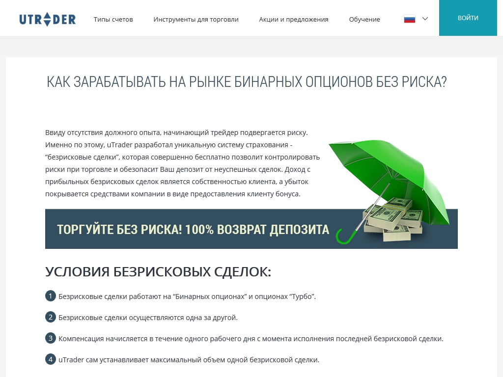 - веб-платформа uTrader для торговли опционами