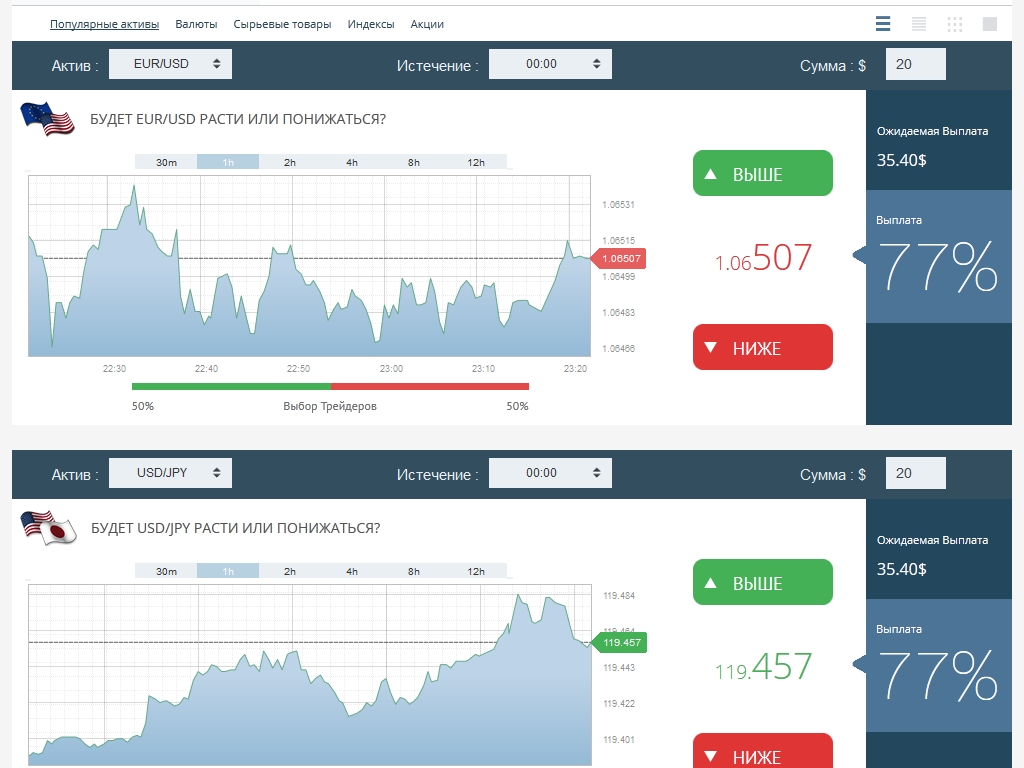 Быстроразвивающийся брокер по бинарным опционам. Есть выбор разных для торговли опционов по разным финансовым инструментам. Форекс бонус на депозит предоставляется. Регулярно проводятся турниры для трейдеров.