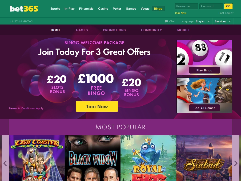 Все игры, представленные в Bet365 Bingo, доступны непосредственно на сайте заведения. Клиентская программа не требуется.