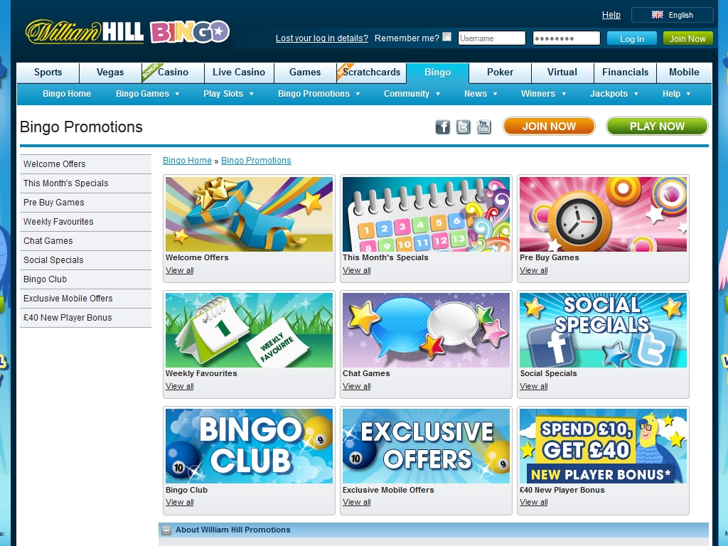 Но на этом предложения от William Hill Bingo не заканчиваются. На протяжении всего периода игры в бинго-холле клиенты будут принимать участие в еженедельных и ежемесячных акциях.