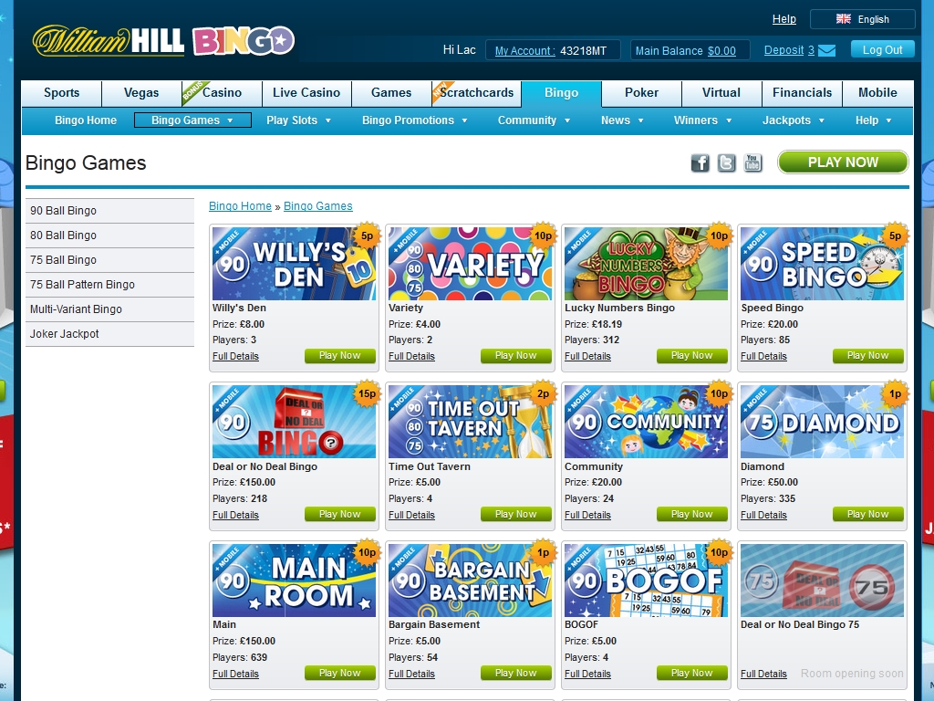 В этом обзоре мы рассмотрим бинго-холл знаменитого игорного портала William Hill, на котором клиенты также могут играть в онлайн-казино и казино с живыми дилерами, участвовать в турнирах по покеру, делать спортивные и финансовые ставки в букмекерской конторе, наслаждаться развлекательными играми, а также пользоваться другими возможностями.