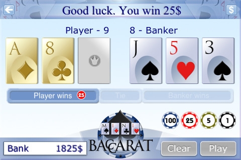 Победителем игры становится тот, у кого на руках после раздачи третьей карты окажется сумма максимально приближенная или равная девятке. Если у дилера и игрока очки равны, то объявляется ничья, ставку можно забрать или оставить на игровом столе для продолжения игры.