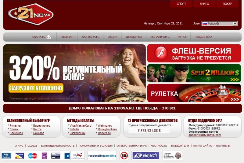 Первых своих клиентов виртуальное казино «21 Nova» встретило в 2009 году. На сайте заведения, чем заняться найдут все – и новички, и опытные игроки. Погрузиться в пучину азартных игр с казино 21 Nova можно за несколько секунд. Интерфейс сайта заведения переведен на несколько самых распространенных языков мира. Посетители сайта могут пополнять свои игровые счета многими удобными им способами. Удовольствие от процесса игры в несколько раз увеличит первоклассное программное обеспечение казино. Принадлежит «21 Nova» Объединению игровых холдингов Вествуда (WHG), а лицензировано было правительством Гибралтара. То есть в высоком уровне надежности и безопасности заведения сомнений возникать не должно.