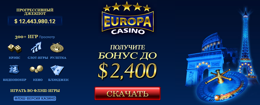 Для стабильной игры каждому новому клиенту казино «Европа» начисляется стопроцентный так называемый постоянный бонус. Кто знает, возможно, именно эти бонусные деньги помогут вам сорвать в «Европе» джек-пот, сумма которого иногда достигает семизначных чисел.