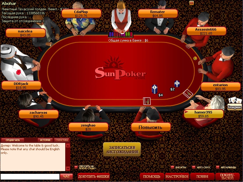 2. При присоединении к уже идущей игре, игрок должен сделать большой блайнд, чтобы начать игру. При чем, это он может сделать сразу без ожидания, или дождаться своего часа большого блайнда, и только тогда вступить в игру. Лучше всего дожидаться своей очереди, поскольку лишний блайнд может впоследствии накапливаться в огромные траты, если игрок часто переходит от стола к столу.