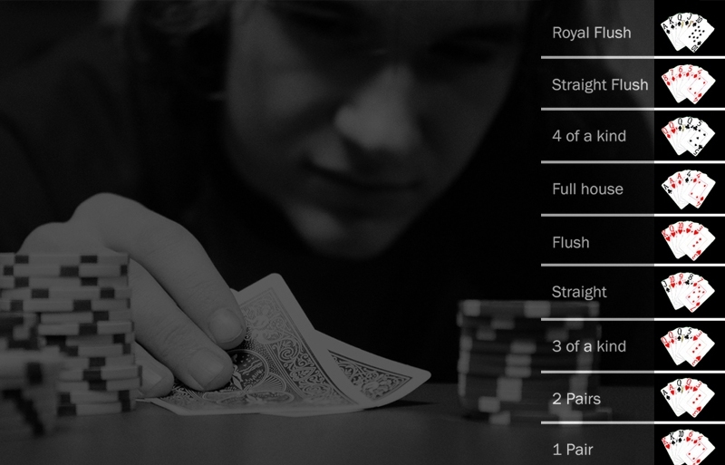 9. Одна пара. Две карты одного ранга и три не связанных карты. Например, JJK73. Более высокая пара выигрывает у низшей. Когда игроки имеют одинаковые пары, связанные "кикер" карты оцениваются по порядку, так комбнация 99Q32 выигрывает у 99765.