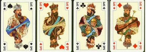 Раз уже речь зашла о королях, то стоит упомянуть и о том, что короли в игральных картах являются олицетворением известных исторических фигур. Все они были известными правителями в свое время. Например, король пик стал олицетворением царя Давида, а король треф обозначил Александра Македонского. Что качается короля червей и короля бубен, они олицетворяли Карла Первого и Юлия Цезаря соответственно.