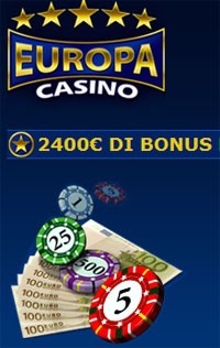 Так же Europa Casino известно во всем мире своими щедрыми подарками новичкам. Всем новым игрокам интернет казино выдает бездепозитный бонус размером в десять долларов. Чтобы получить бонус, необходима регистрация. Кроме того, есть возможность получить бонус размером 2400 долларов. Для этого необходимо сотрудничать с Europa Casino на протяжении целого года. Таким образом, игрок будет получать ежемесячные бонусы за новые депозиты (по 100 долларов) и еженедельные выплаты (по 25 долларов) всего лишь потому, что будет играть регулярно в казино. Существует еще так называемый Элитный Бонус. Его начисляют, если вы пополняете свой счет казино на сумму более тысячи долларов (или в другой валюте, сумма которой должна быть эквивалентна 1000 долларов). Бонус будет равен половине суммы, положенной на счет.