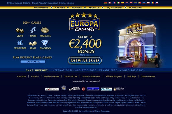 На сегодняшний день казино Europa Casino стало одним из самых популярных мест время проведения любителей азартных игр. Пользователи сети Интернет любят это заведение за широкий ассортимент слотов (их насчитывается более трехсот), которые, кроме того, обслуживаются компанией Плейтек, которая известна во всем мире своим профессиональным софтом и хорошим в техническом плане оборудованием.