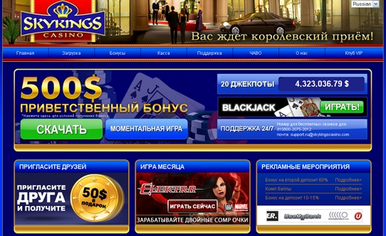 Онлайн-казино «Sky kings» очень походит на интернет-казино «Jovland». Оно содержит в себе типичные игры азартного заведения, ничего необычного: «карибский покер», «европейская рулетка», видеопокеры, «блэкджек свитч» и несколько игровых слотов.