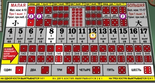 В данной азартной игре игроку предоставляется возможность совершать любые ставки, ставя на разные числа либо их комбинацию.