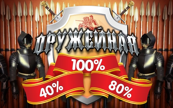 С 27 по 30 января участвуйте в акции "Оружейная" и получите бонус от 40% до 100% за депозит от 5 USD и выше. Чтобы на Ваш счет поступил бонус в размере 100%, внесите 50 USD на свой игровой баланс. Максимальный размер данного бонуса составляет целых 200 USD.