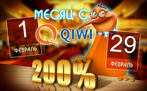 Февраль сделает Вас богатым и успешным! Чтобы последний месяц зимы запомнился Вам надолго и принес море азарта и позитива, Твист Казино запускает акцию "Месяц с Qiwi", которая принесет Вам 200% бонусы за каждое пополнение баланса! Не упустите шанс удвоить все свои депозиты!