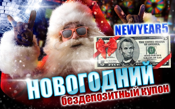 Зима штука хорошая! А Новый год ещё лучше! В преддверии праздников Твист Казино хочет поднять Вам настроение бездепозитным бонусным купоном "Новогодний"! Получите 5 долларов в подарок от Твист Казино просто так! Для получения денег не нужен депозит. Всё что от Вас требуется – вовремя зайти на сайт игрового заведения и активировать бездепозитный купон в разделе "Получить бонус".