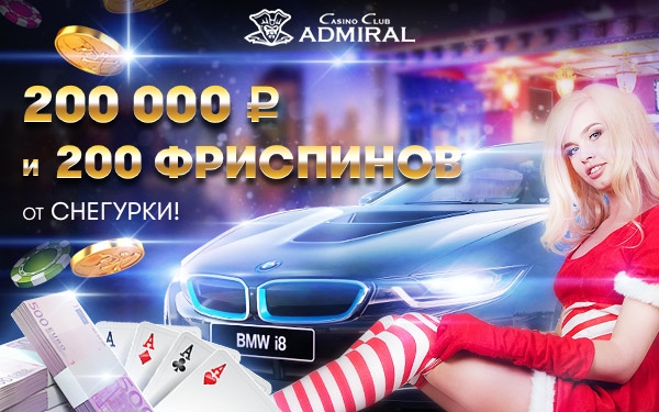 Самые невероятные события ожидают игроков казино-клуба Адмирал перед Новым годом. Вы уже знаете, что Снегурка рулит! И делать она это будет до 18 декабря включительно. Вам за это время нужно собрать максимум выигрышных раундов. Призы – 200 000р., 200FS и путевка к выигрышу BMW i8!