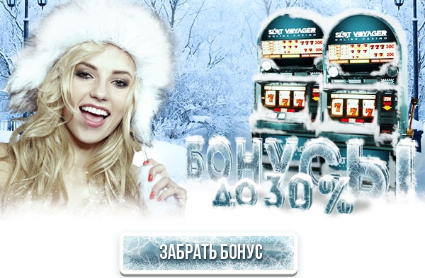 Первый снег принесет на счета игроков онлайн клубе SlotVoyager крутые бонусы! За депозит от 25$ - 20%, за пополнение счета на 50$ - 30%, а если забросите на деп сумму не менее 100$, то получите в подарок 30% начисления! Холодное время года – это не так уж плохо, не правда ли?