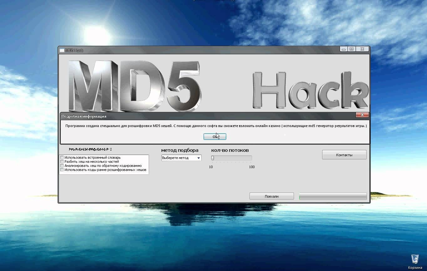 Взлом казино по алгоритму md5