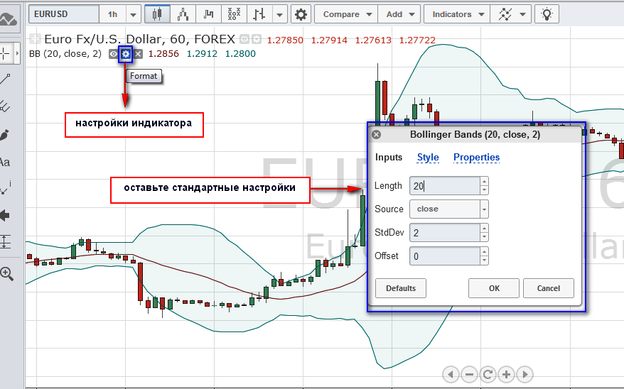 Принцип работы индикатора Боллинджера