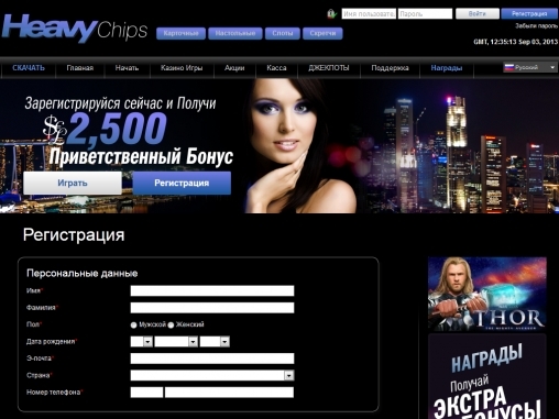 Казино с широким выбором развлечений. Также вам понравится бонусная политика казино Heavy Chips. Для игроков из СНГ он будет особо приятен благодаря наличию переведенной на русский язык версии сайта. На сайте казино имеются игры от двух разработчиков - Playtech и Game-Os. Ставки можно делать американскими долларами, британскими фунтами стерлингов, а также использовать в качестве игровой валюты евро. Heavy Chips – это надежное виртуальное казино, которое дарит своим клиента сногсшибательные бонусы и проводит для них щедрые акции. На многих игровых автоматов в казино разыгрывают прогрессивные джек-поты, сумма которых достигает фантастических размеров.