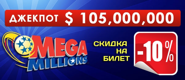 Лотерея Mega Millions – лотерея, которая растиражирована в 44 американских штатах и розыгрыш проходит каждый день. Принцип игры таков - надо из 75 чисел выбрать только 6, что – то наподобие «Спортлото».