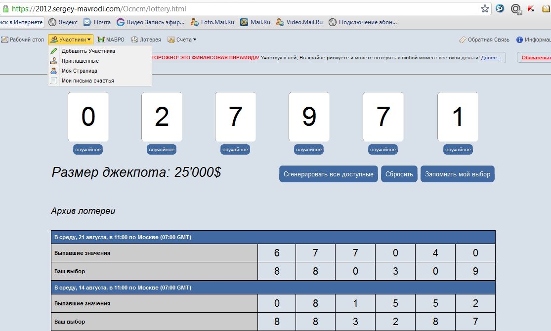 Далее мы не попросту генерируем шесть случайных номеров, а используем некий трюк, который позволит нам получить намного выше достоинства псевдослучайных номеров.