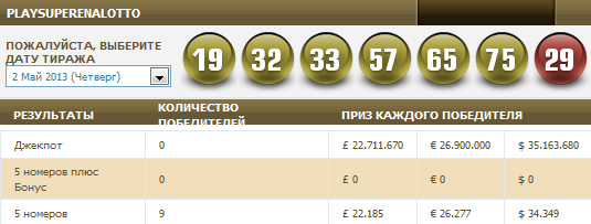 В 2009г. был получен максимальный денежный приз в этой лотерее – 143.9 млн. евро. Также крупную сумму в размере 72 млн. евро выиграл в 2005г. синдикат из 10-ти человек.