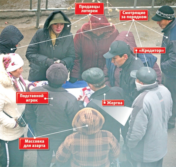 Завлекают в такую лотерею зазывалы, которые потом выигрывают в лотерею. Доход от таких мошеннических лотерей очень большой, ведь их устанавливают в местах скопления большого количества людей.