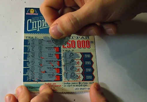 Обычная мгновенная лотерея – это карточка небольших размеров. На ней можно заметить металлическое напыление, которое будет необходимо стереть, для того чтобы узнать результат.