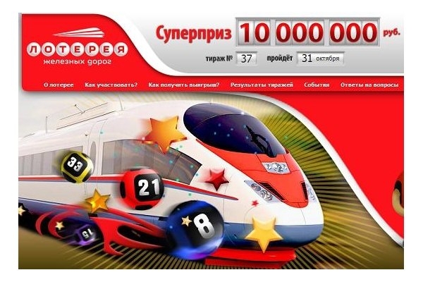 Лотерея железных дорог, как можно догадаться по названию, проводится при участии Российских железных дорог. Ее билеты соответственно продаются на вокзалах и даже в пассажирских поездах. Гарантированный джек-пот равен десяти миллионам рублей, но чтобы его получить, нужно, чтобы совпало семь последних номеров – шесть основных и одно дополнительное. Если в билете совпали хотя бы две цифры, он уже считается выигрышным.