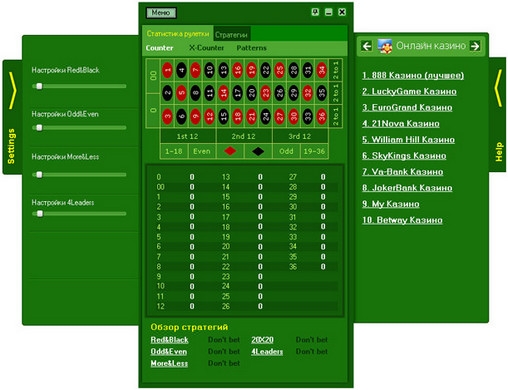 Многие с игроков предполагают, что это невозможно, так как в их рассуждении игра в рулетку вымогает тщательности и концентрации внимания на процессе каждого тура, дабы не утратить ритм. Однако при применении Число Рулетки вы действительно сможете смотреть вашу любимую телепередачу, пока программа разрабатывает шаги игры в рулетку вместо вас, в том числе настройку и расчет личных ставок, сверку результатов и занесение поправок в схему в процессе игры.