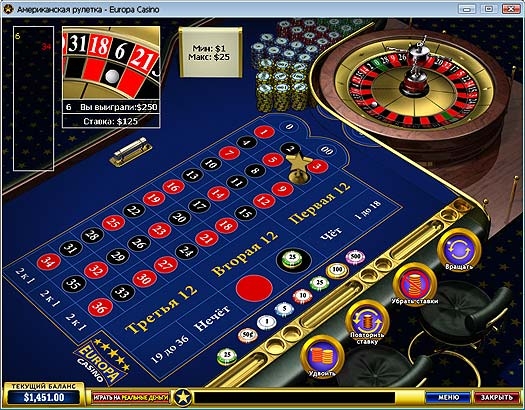 Не знаете, на каком сайте испытать удачу, сыграв в рулетку. В таком случае, можем порекомендовать вам это развлечение в казино Europa. Играть в рулетку здесь очень удобно и легко, благодаря простому, но очень информативному интерфейсу. Чтоб сделать ставку, нужно всего лишь расставить на соответствующих полях необходимое количество виртуальных фишек. Сделанные ставки после этого автоматически выделятся на игровом столе.