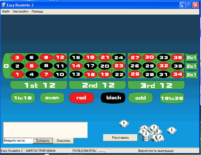 Если скачать бесплатную программу для рулетки, чтобы не платить деньги, то ее работа заключается в следующем: нужно ввести числа, которые выпадают в рулетке, чтобы программа показала самые выгодные ставки. Желательно ввести очень много чисел, правда, не во всех заведениях можно бесконечно крутить колесо без ставок. В игре очень много разных ставок. При написании программы программист вносит все возможные серии, но они не все выгодны. Правда, существуют программы, где можно настроить более выгодные серии. После получения результата нужно расставить ставки в игорном заведении согласно программе. После запуска колеса, вы можете оказаться в минусе, то есть сумма ставок больше, чем выигрыш. Выпавшее число нужно записать в программу, чтобы она выдала следующую ставку. Опять результат минусовый.